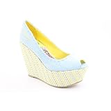 Ed Hardy Capri Womens SZ 7 Blue Turquoise New Peep Toe Textile Wedges Shoes Feature
