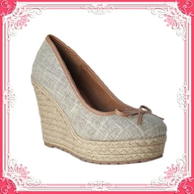 Read more Women's Qupid Beige Canvas Platform Bow On Espadrille Wedge Sandals Size 5.5 (Warren03)